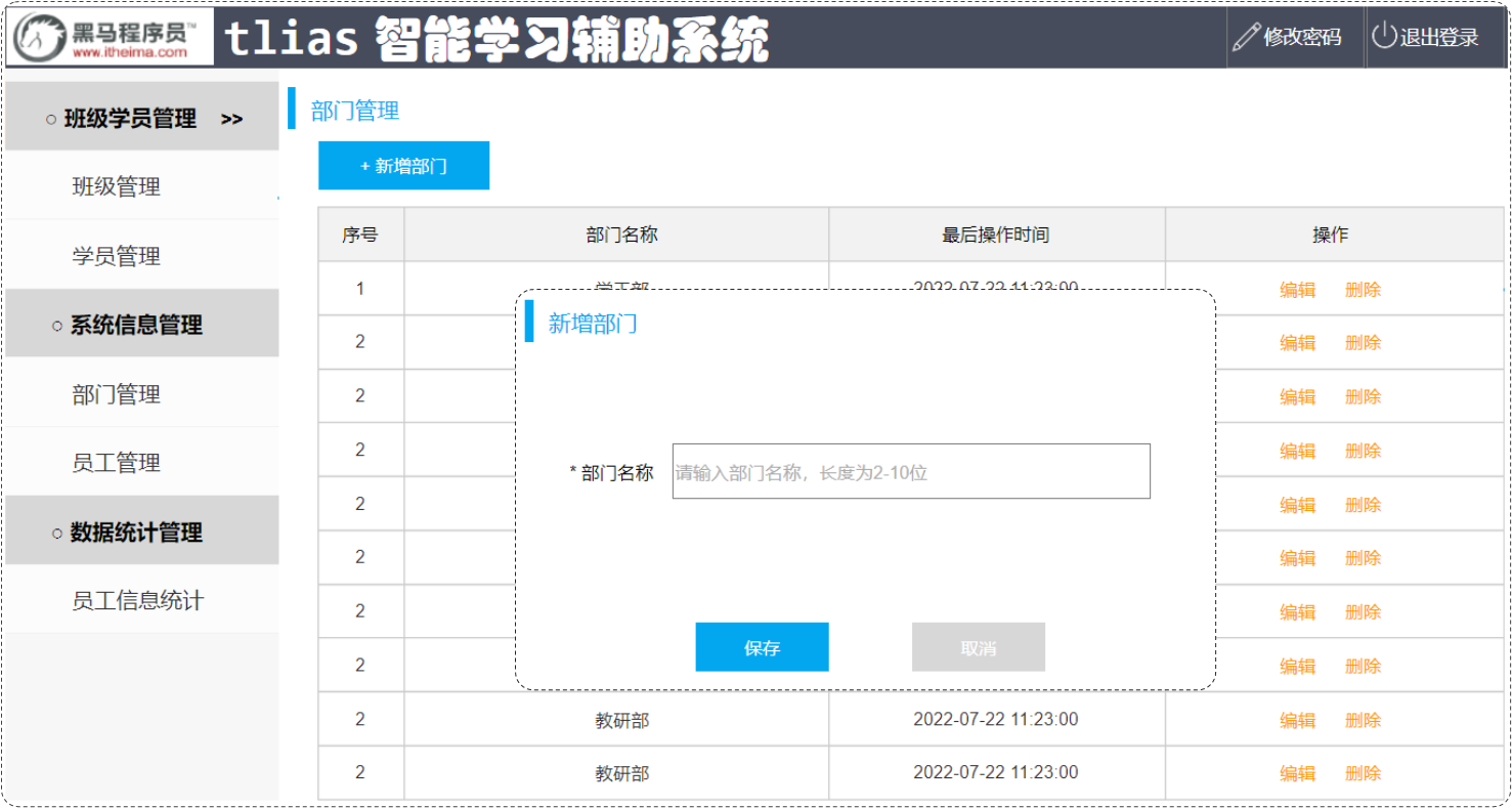 当我们勾选列表前面的复选框,然后点击 “批量删除” 按钮,就可以将这一批次的员工信息删除掉了。也可以只勾选一个复选框,仅删除一个员工信息。