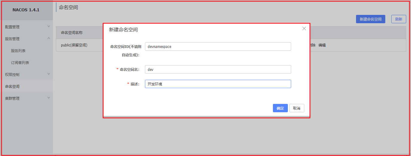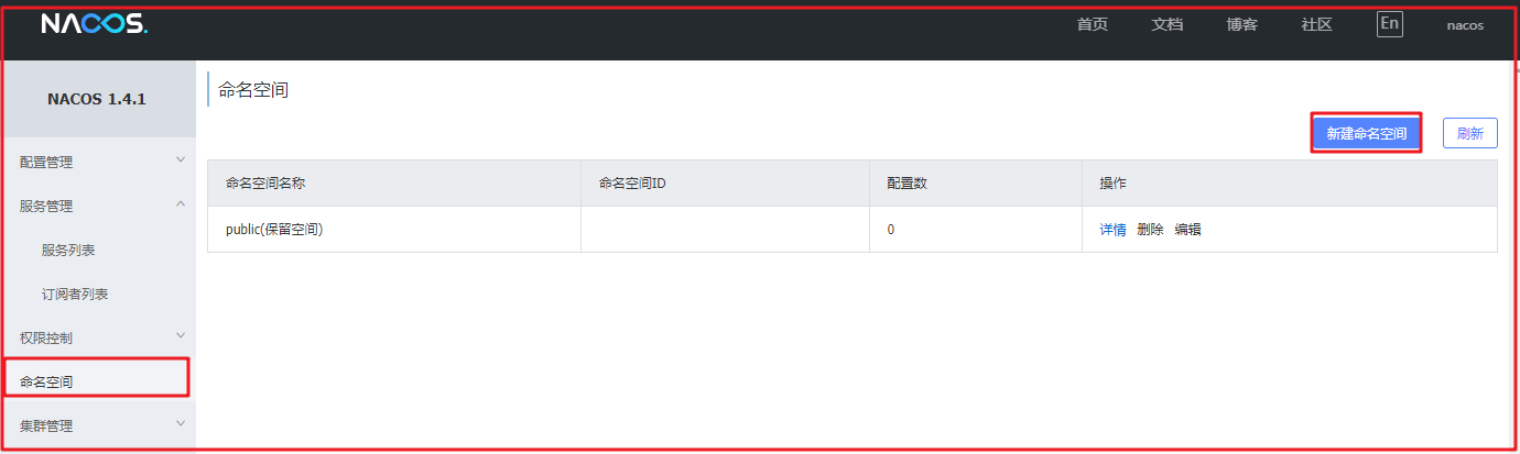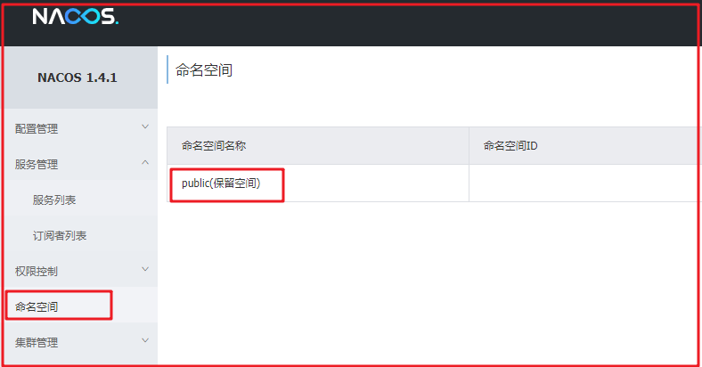 默认情况下,所有service、data、group都在同一个namespace,名为public: