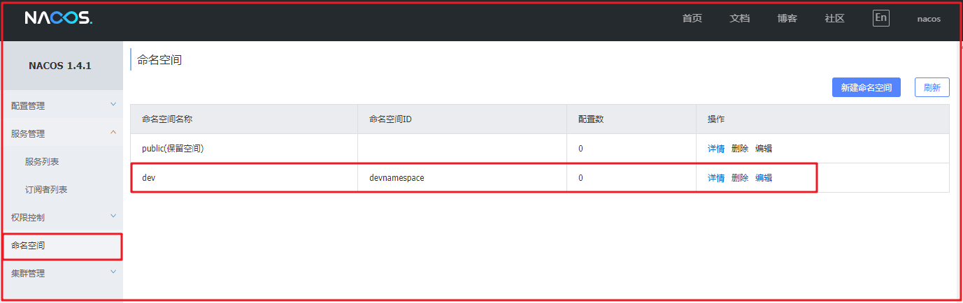 - nacos中可以有多个namespace(环境隔离:test dev pro)